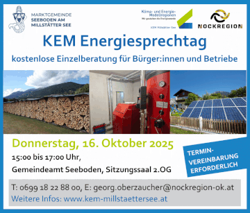 Nutzen Sie die Gelegenheit für eine kostenlose und unverbindliche Einzelberatung mit dem KEM-Manager Georg Oberzaucher. Er steht Ihnen am 16.10.2025 von 15:00 bis 17:00 Uhr im Gemeindeamt für individuelle Beratungen zur Verfügung.