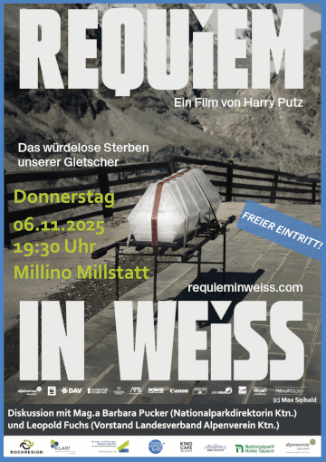 Gletscherschmelze und Tourismus: Wenn das ewige Eis schwindet „REQUIEM IN WEISS – Das würdelose Sterben unserer Gletscher“ – Filmvorführung und Diskussion am 06.11.2025 um 19:30 Uhr im Millino Millstatt.