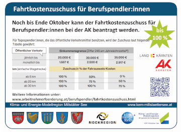 Arbeitnehmer:innen, die mindestens an zwei Tagen in der Woche zur Arbeit pendeln, können ein Jahr rückwirkend einen Fahrtkostenzuschuss aus der Arbeitnehmerförderung des Landes beantragen. Der Zuschuss ist abhängig von der einfachen Wegstrecke zwischen Wohn- und Dienstort und dem Einkommen. Nutzer des Öffentlichen Verkehrs können ihre Tickets, die sie im Jahr 2025 erworben haben, bereits 2025 einreichen.